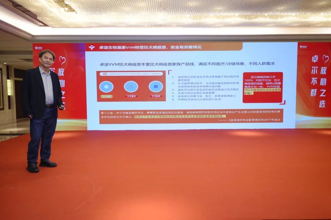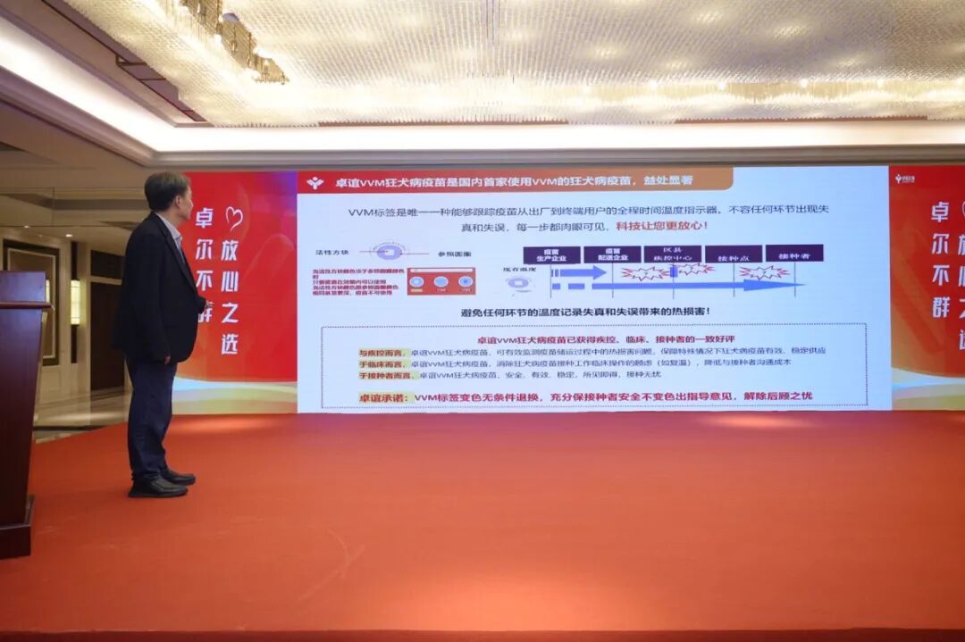 李发亮主任特别强调了卓谊生物VVM狂犬病疫苗的独特优势。卓谊生物是国内首家使用VVM标签的狂犬病疫苗企业,VVM标签作为一种全程时间温度指示器,能够精准跟踪疫苗从出厂到终端用户的每一个环节,确保疫苗在合适的温度范围内储存和运输,避免了因温度失控导致的疫苗失效问题,让接种者更加放心。同时,这一标签也方便了疾控、临床和接种者对疫苗状态的监测,提升了整体的接种安全性。不仅如此,卓谊VVM狂犬病疫苗有多重保险护航,包括疫苗损害事故、疫苗异常反应、接种事故、疫苗接种免疫失败等情况都有相应的保险保障,让医患都无后顾之忧。